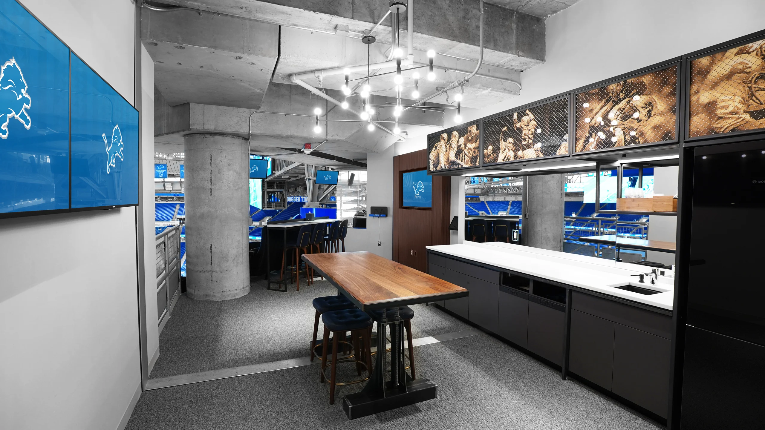 A comprehensive renovation reimagined 190,000 square feet of premium space, including 129 suites, club levels, dining areas, and corridors. The project introduced a range of modern amenities and reconfigured suite sizes to meet evolving market demands—all completed within an eight-month timeline. HRSW played a key role by installing quartz countertops throughout all suites, concessions, club areas, and premium-level amenities.